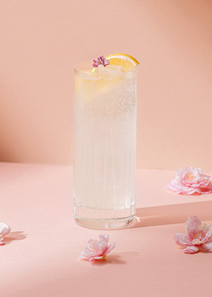 櫻花琴酒結合氣泡水與檸檬汁,花香清雅、酸度明亮,口感俐落,餘韻輕盈乾淨。